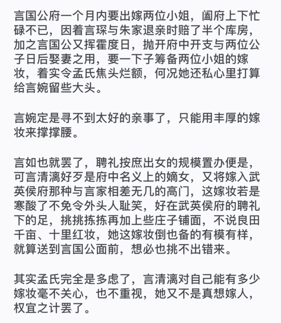 听闻是金秋时昌惠帝大寿,赵攸代其父进京献礼,偶然见到言国公府二小姐后,一见倾心,念念不忘,而后鼓足勇气来提亲。