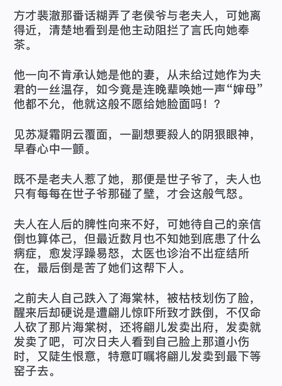而当初派翩儿追去服侍苏凝霜的正是早春,早春也因此被连累挨了十个板子。