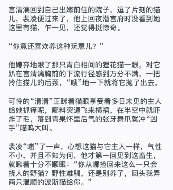 “清清”似乎听懂了人话,又惊又恐,顿时收起尖利的猫爪,挥着小肉垫委屈的嗷嗷直叫,拼命向言清漓怀里扑,青果瞥见姑爷投过来要殺猫的眼神,赶紧将那只不知眉眼高低还yu强行争chong的小猫给抱了出去。