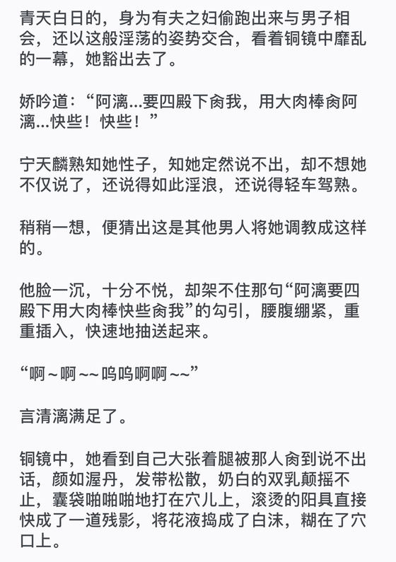 “阿漓,记住你现在这个样子。”宁天麟面容昏暗,看向铜镜中交合的二人,阴郁dao:“其他男人再碰你时,便想想今日,想想我今日是如何…”顿了一下,他才咬牙说出那个字,“想想我今日是如何cao1你的!”