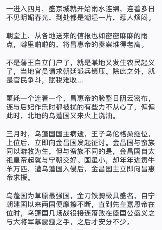 大臣们谏言派使者去劝说停战,这正合昌惠帝之意,他又从众多秀女中挑了两名容貌出挑的,让使者一并带了过去。