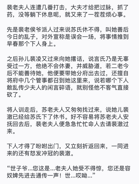 是以,当看到怒容满面的裴澈时,裴老夫人猛然怔住,质问休书的话也噎在了嗓子眼。