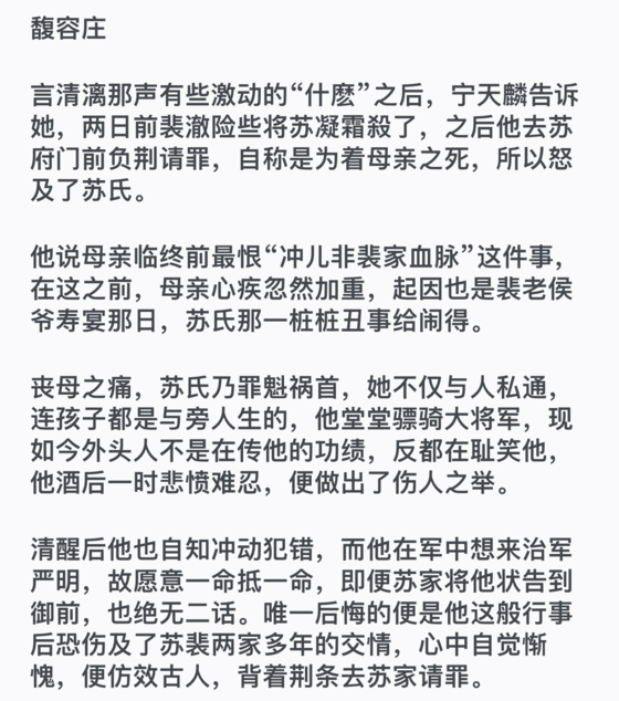 言清漓的心情随着宁天麟那番话跌宕起伏,先是为裴澈伤害苏凝霜感到震惊,又为他伤人后那么快便怂了,没出息地跑去苏府赔罪而感到鄙夷。